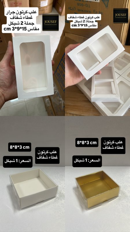 علب كرتون غطاء شفاف مقطع (جرار) 15*9*3