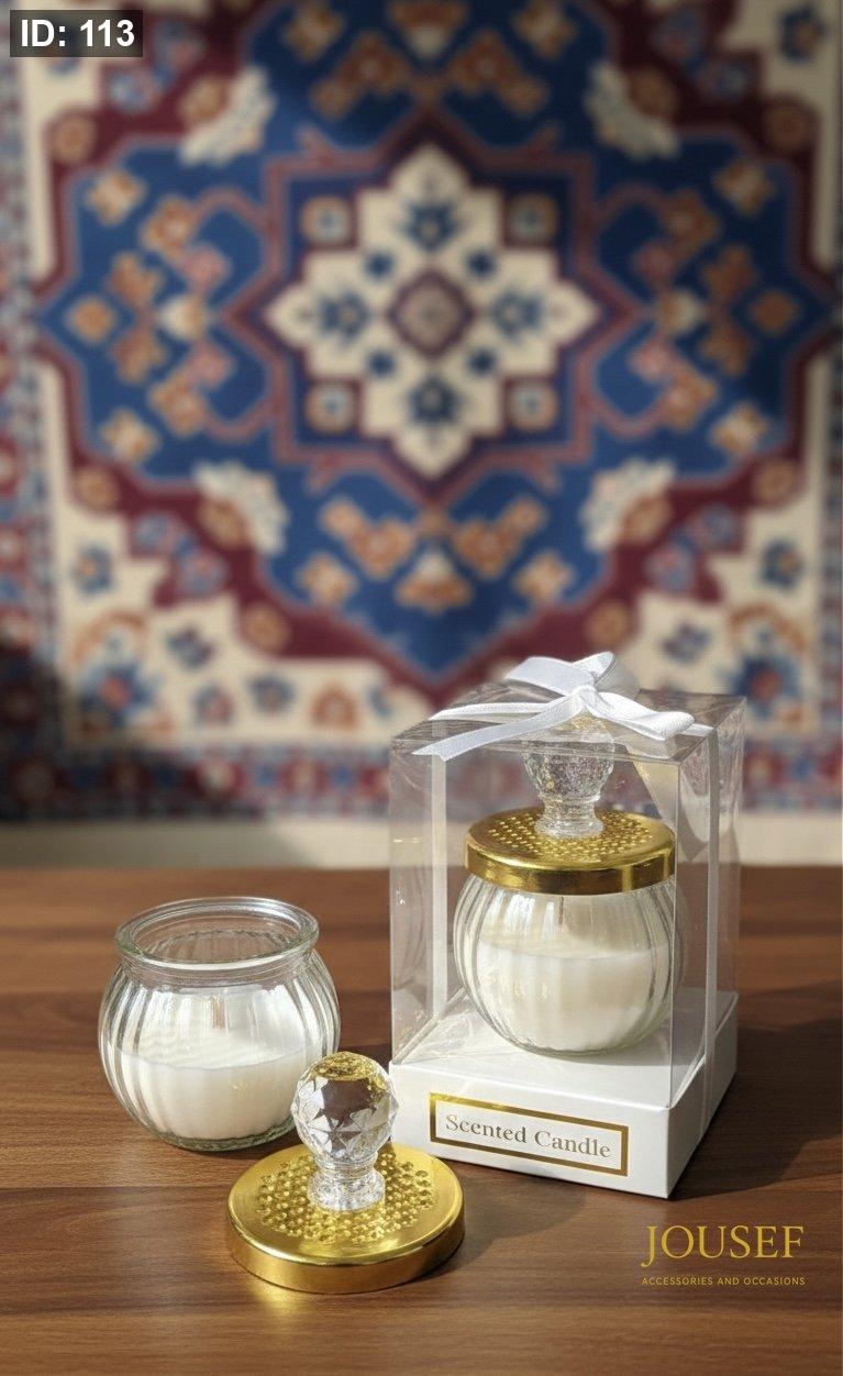 شمع معطر داخل علبة زجاج مع علبة pvc